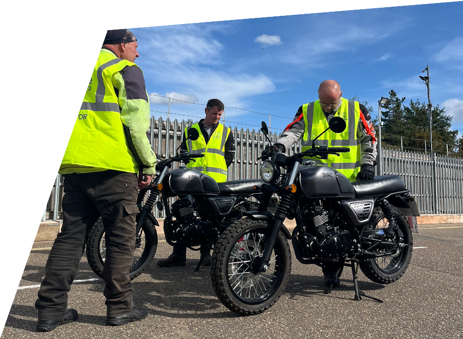 We do not supply any protective clothing, so ask you to take this into consideration when deciding what to wear to your course (please scroll down the page for more information about what to wear, or refer to the DVSA's website).
